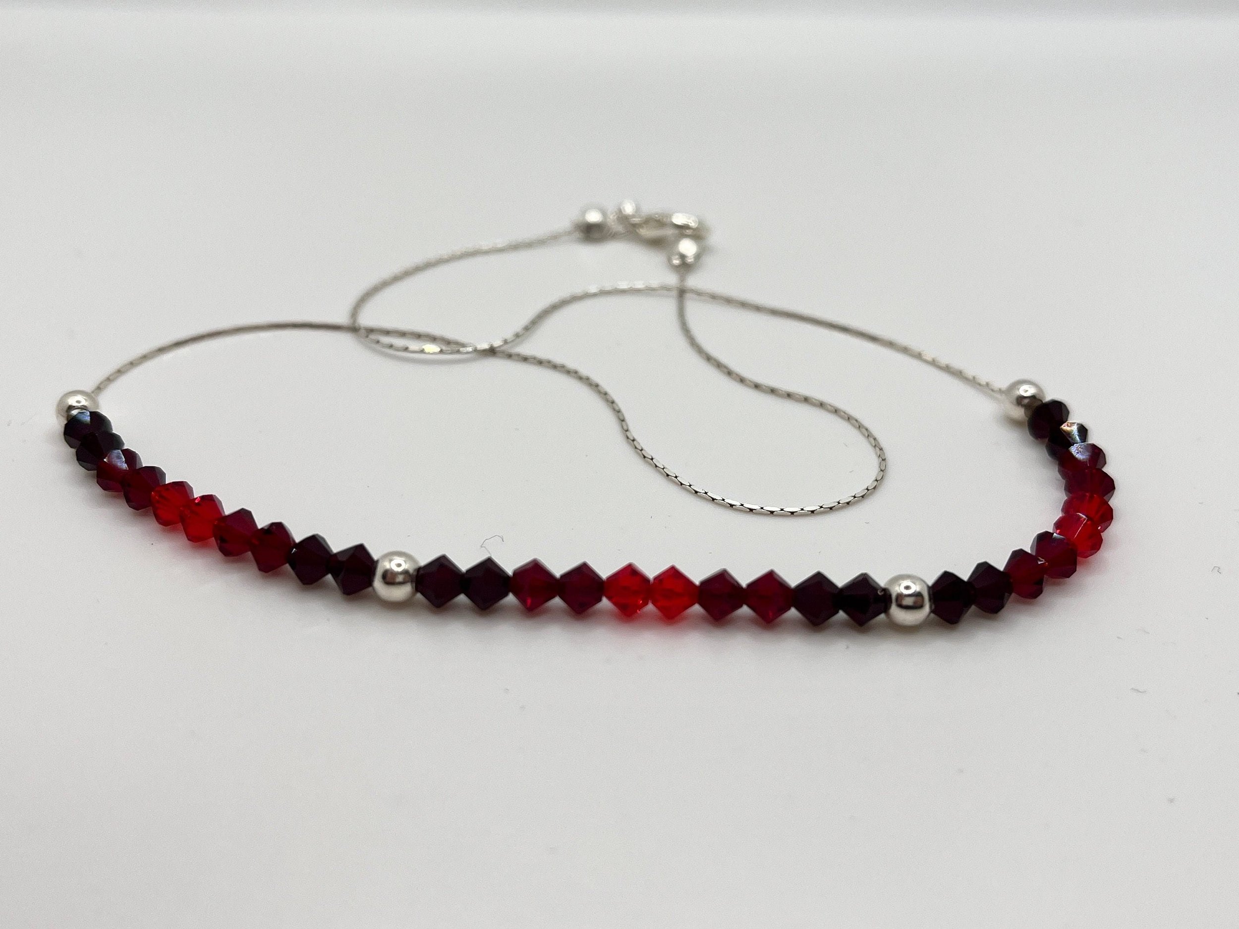 Handmade Gradient Swarovski Crystal Necklace, Light Siam Red, Siam Red and Burgundy, Sterling Silver, Unique Length: 42 cm / 16.54 inch Materials: 30 Crystals Brand: Swarovski Place of Origin: Austria Thank you for visiting our new shop - we hope to see you back often! π Anca & Irina βββββββββββββββββββββββββ β Important Note: As we use natural stones, their shade in real life may sometimes vary slightly. β We provide each item individually packed and thoroughly check before dispatch to ensure it will reach you safely. βββββββββββββββββββββββββ For any queries feel free to message us. βοΈ